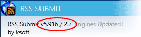 This brings the latest version to RSS Submit 5.916 / 2.7. This new release also includes several RSS directory updates, including 1 new directory, 1 update, and 1 removal.
